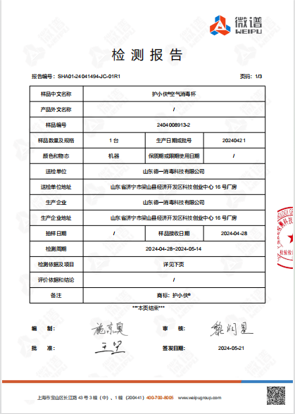 空氣消毒杯檢測報告