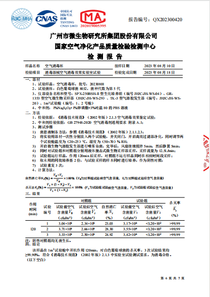 護(hù)小俠空氣消毒杯檢測(cè)報(bào)告